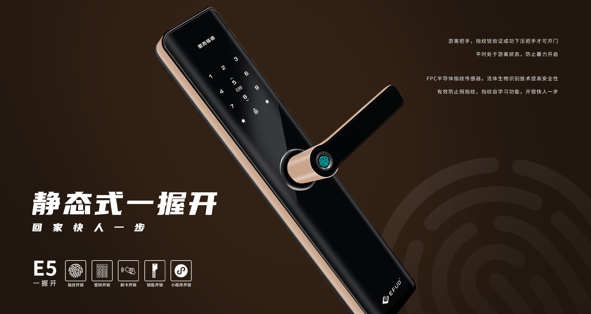 中山市愛而福德電子科技有限公司專注家用智能鎖25年,是一家集產(chǎn)品研發(fā)、制造、銷售、售后于一體全產(chǎn)業(yè)鏈的國家高新技術(shù)企業(yè)。公司擁有現(xiàn)代化生產(chǎn)基地8500平方米,具備35000把/月的生產(chǎn)規(guī)模及一支十多年專業(yè)的研發(fā)團(tuán)隊,產(chǎn)品均擁有100%自主知識產(chǎn)權(quán)。公司一直秉承“創(chuàng)新智造,工匠精神”,為每一位用戶提供智能、便捷、安全的高品質(zhì)生活!